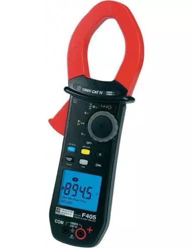 F405 Pince multimètre TRMS AC+DC. 1000A AC/1500A DC. 1000V AC/DC. W, VA, var, PF, THD. Rotation de phases. Résistance, continuité, fréquence. TrueInrush, Min, Max, Peak+/-. Mesure Différentielle et Relative. Enserrage 48mm. 1kV CATIV IP54