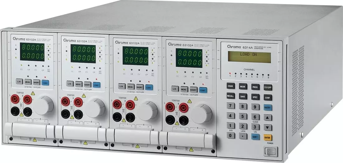 Le Chroma 6314 est un châssis principal de charge électronique DC conçu pour accueillir jusqu’à quatre modules de charge de la série 6310, permettant des tests polyvalents pour diverses applications. Il est particulièrement adapté pour l’évaluation d’alimentations AC/DC à sorties multiples, de convertisseurs DC/DC, de chargeurs et de composants électroniques de puissance.