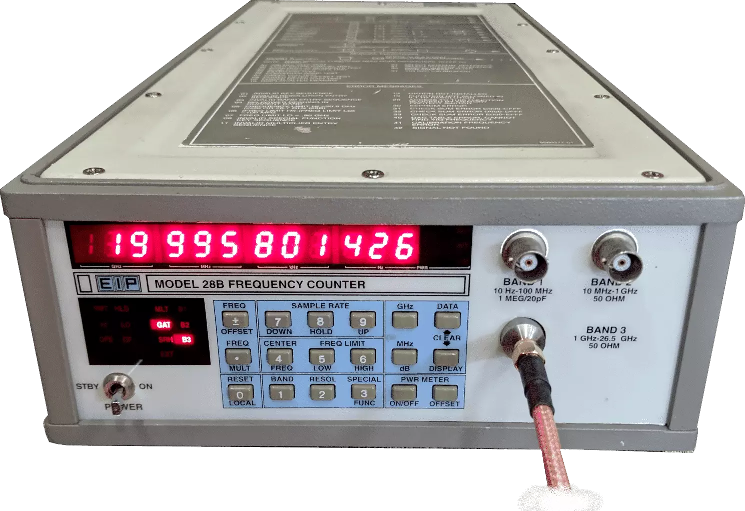 Compteur hyper 3 voies, 10Hz à 26,5 GHz, mesure simultanément la fréquence et la puissance avec une résolution de 0.1dB, sensibilité -30dBm, temps d’acquisition 200mS, préselecteur YIG, GPIB.