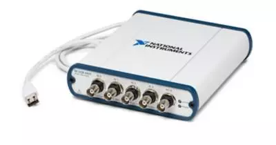 Le NI USB-4431 est un module d’acquisition de signaux dynamiques conçu pour les mesures acoustiques et vibratoires. Il offre quatre entrées analogiques simultanées de 24 bits et une sortie analogique de 24 bits. Les canaux d’entrée intègrent un conditionnement de signal IEPE (Integrated Electronic Piezoelectric) pour connecter des accéléromètres et des microphones. Les entrées peuvent numériser des signaux à des taux d’échantillonnage allant jusqu’à 102,4 kéch./s, avec une gamme dynamique de 100 dB. La sortie analogique est idéale pour les tests de réponse à un stimulus et peut être synchronisée avec les canaux d’entrée. Le module propose une plage de sortie de ±3,5 V et une plage d’entrée de ±10 V. De plus, il est doté de filtres anti-repliement pour assurer la précision des mesures.