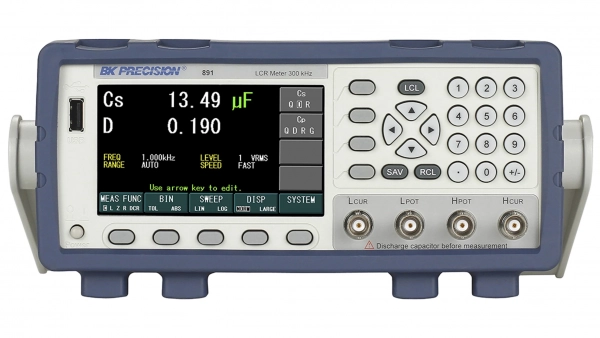 Modes de mesure : Possibilité de mesurer en série ou en parallèle les paramètres L et D, C et D, C et ESR, ou C et R équivalent parallèle.