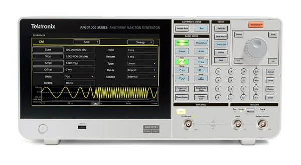 Arbitrary Function Generator: 1-ch, 250MHz Bandwidth, 2GSa/s sample rate, 16M pts arb memory, 14-bit vertical resolution, 5Vpp to 50ohm, traceable cal cert std.